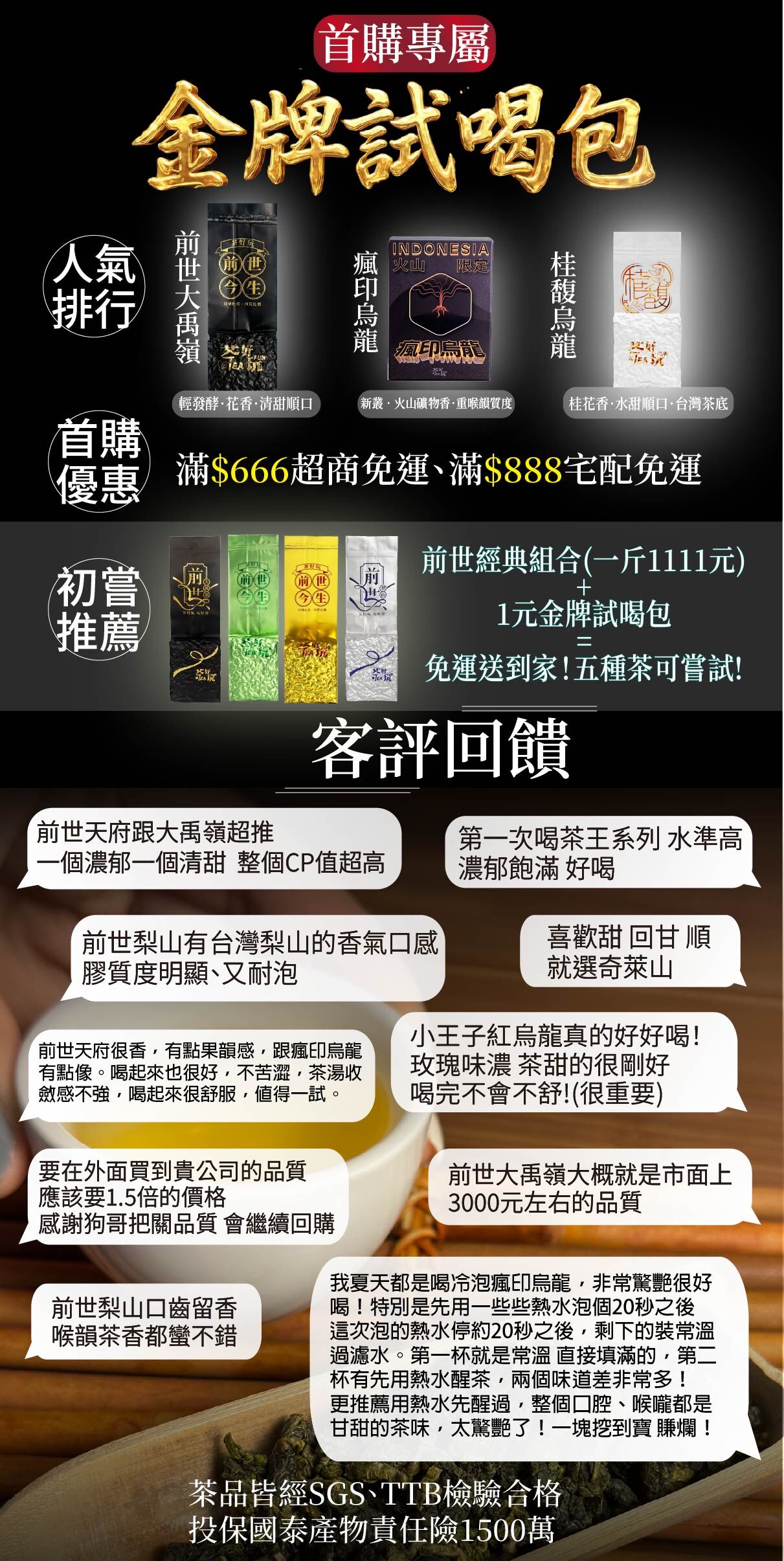 每包試喝皆為15g,茶樣袋將使用隨機茶樣袋
