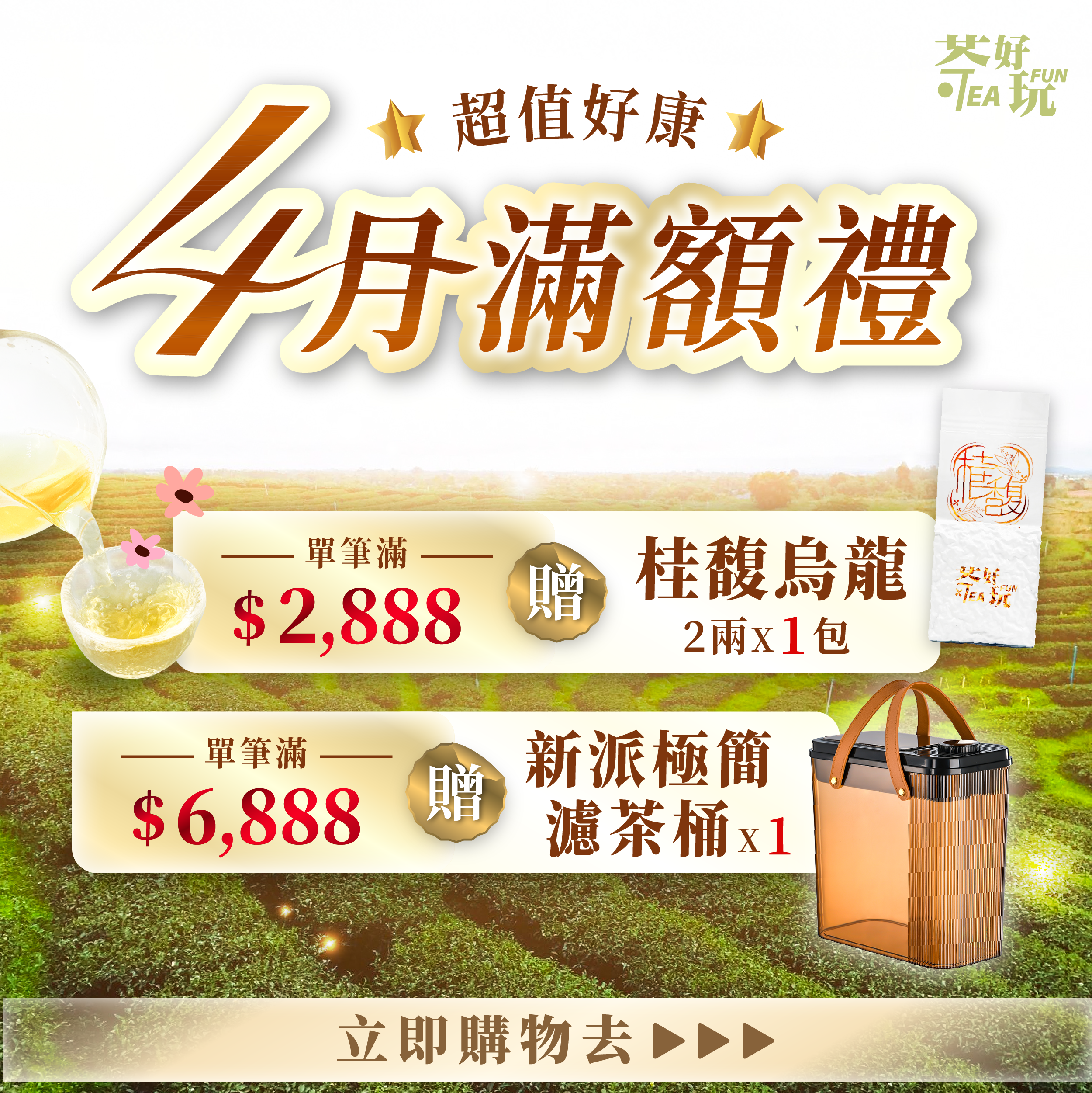 至2026-04-30T16:00:00.000+00:00截止 全店,茶香四溢🍵滿$2888贈桂馥烏龍(二兩)X1