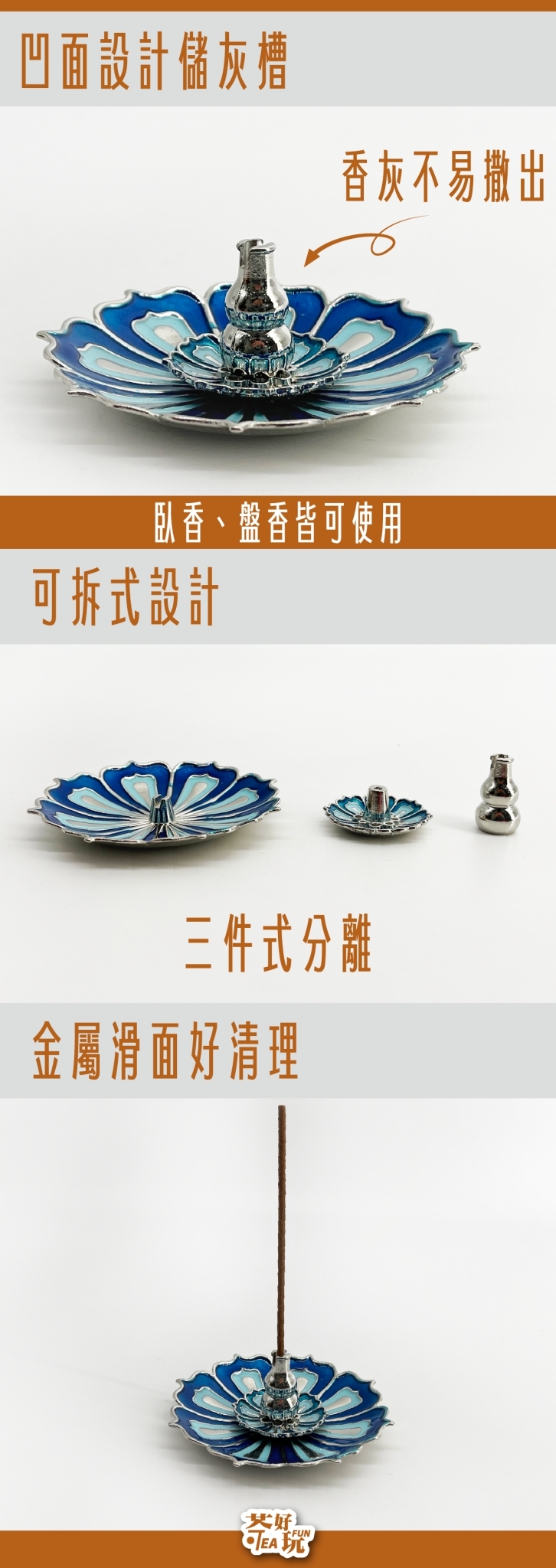 凹面蓮盤大容量儲灰,不易撒出,用起來更俐落。