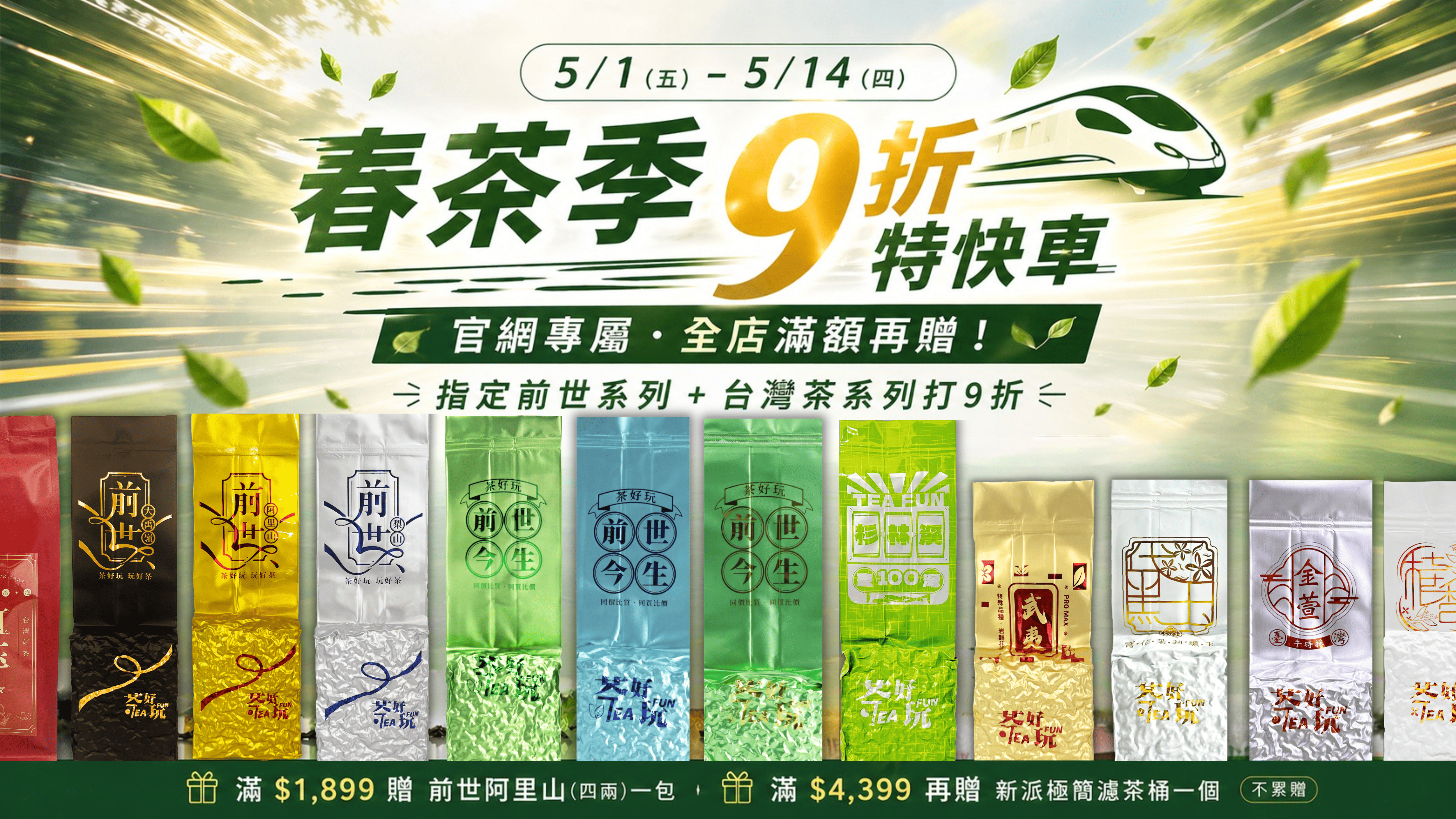 5月限定|滿$1899送前世阿里山(四兩);滿$4399送新派極簡濾茶桶(原價$880)